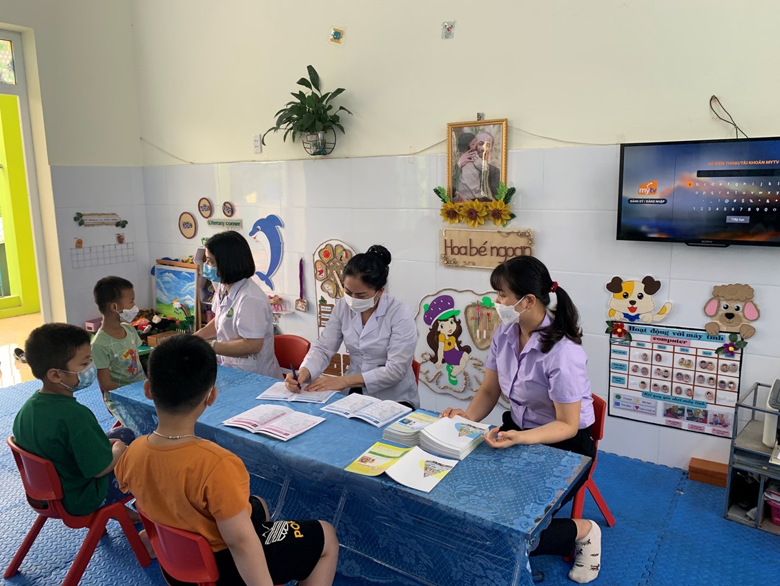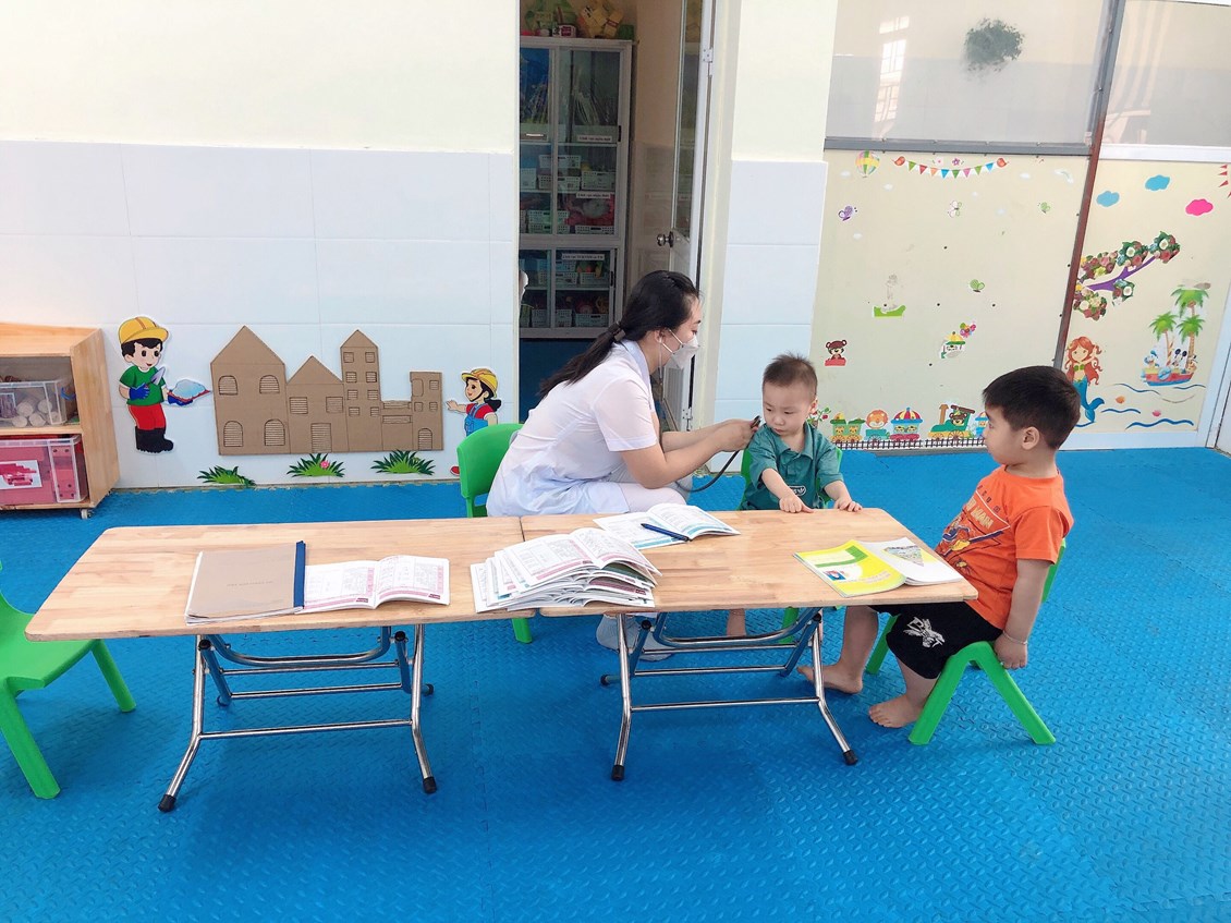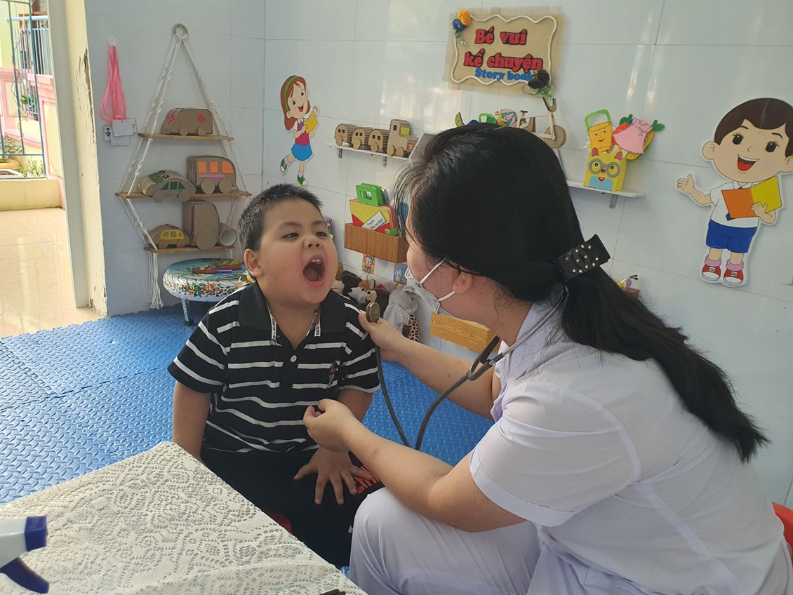 Từ “Nhà trẻ đến Mẫu giáo” với các nội dung kiểm tra: Cân nặng, chiều cao, khám tai, mũi, họng, kiểm tra tim phổi và một số bệnh liên quan đến đường hô hấp, da liễu...