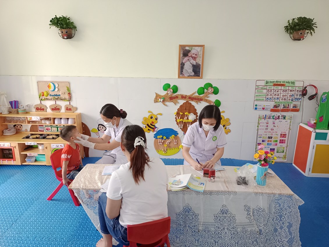 Khám sức khoẻ định kỳ cho các bạn nhỏ là hết sức thiết thực và ý nghĩa thông qua việc khám sức khỏe định kỳ cho trẻ, đã góp phần không nhỏ vào việc phòng chống một số bệnh thường gặp ở lứa tuổi mầm non và cũng qua hoạt động này đã đem lại sự phấn khởi, tin tưởng trong các bậc phụ huynh về một môi trường giáo dục an toàn và thân thiện.