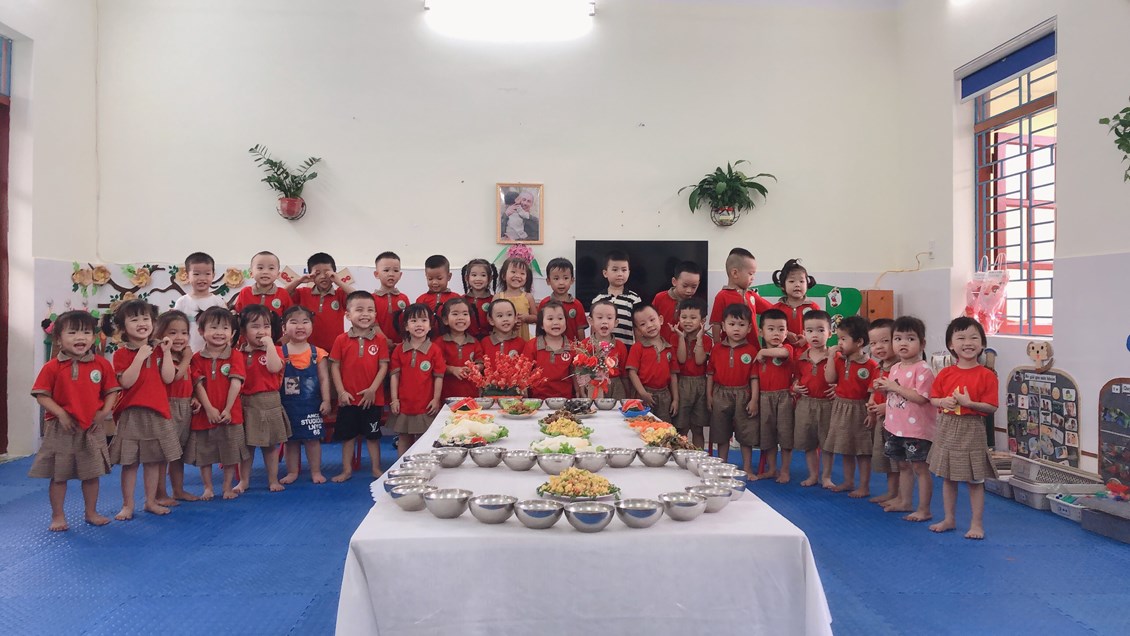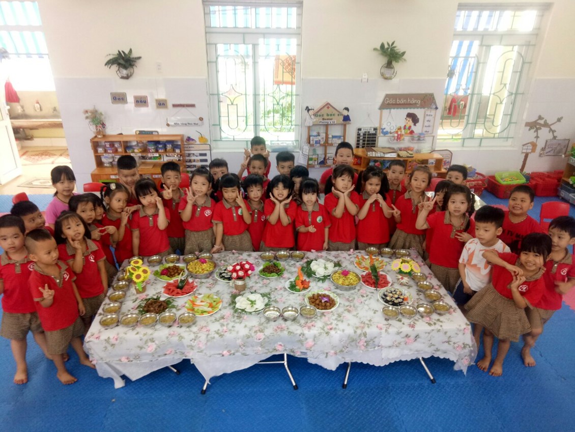 Những món ăn được chế biến cầu kì theo sở thích và khẩu vị của bé. Đồng thời yếu tố thẩm mỹ cũng được đặc biệt chú trọng. Bởi hơn ai hết các cô nuôi dưỡng của nhà trường hiểu rằng, chỉ khi chinh phục được thị giác của trẻ thì các con mới sẵn sàng trải nghiệm những món ăn mới. Vì thế bàn tiệc của cô trò MN Bắc Sơn luôn được tô điểm bởi những bông hoa đủ hương sắc!