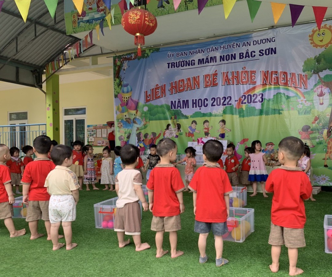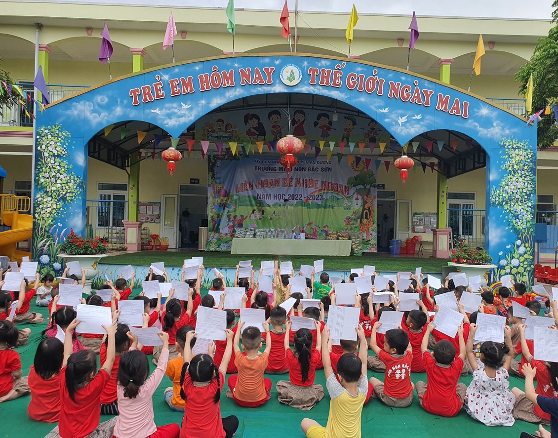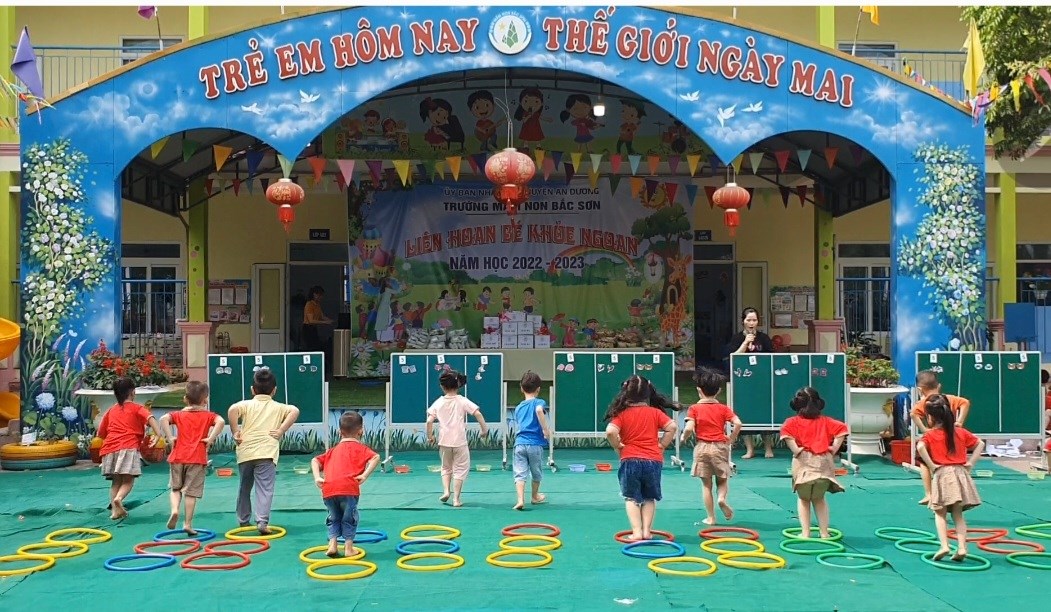 Nhằm đánh giá sự phát triển toàn diện của trẻ về thể chất, ngôn ngữ, nhận thức, tình cảm, thẩm mỹ, tạo cơ hội cho trẻ được giao lưu học hỏi, thể hiện kỹ năng, sự hiểu biết, năng khiếu bản thân, nhanh nhẹn và tự tin trong giao tiếp. Qua đó phát huy, bồi dưỡng năng khiếu, tài năng của trẻ, ngày 24/4/2023 trường Mầm non Bắc Sơn tổ chức hội thi “Bé khỏe bé ngoan” cấp trường.